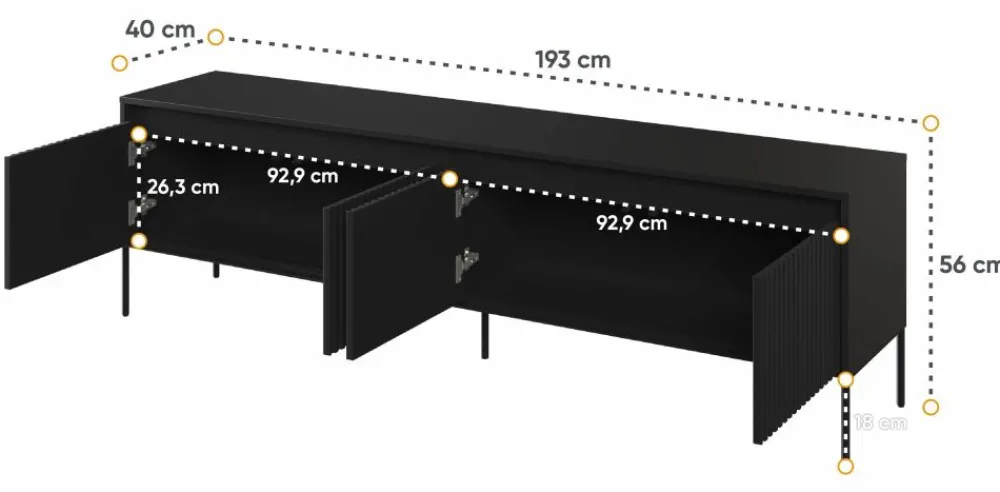 Przestronne szafki szafki TR-06 zapewniają wystarczającą ilość miejsca na urządzenia audio-wideo, piloty, gry i wiele innych drobnych przedmiotów. Ta wszechstronność sprawia, że doskonale dopasowuje się do różnych stylów aranżacji wnętrza, od nowoczesnego po skandynawski czy industrialny.