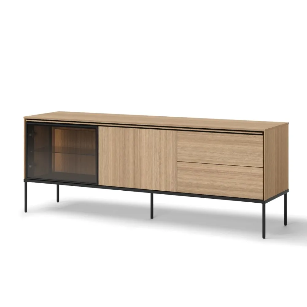 Szafka RTV VISSO VI-07 na wysokich nogach nie tylko dodaje lekkości i elegancji, ale również zapewnia stabilność i bezpieczeństwo dla Twojego sprzętu multimedialnego. Wytrzymałe materiały gwarantują, że szafka utrzyma nawet większy telewizor, zapewniając jego stabilne położenie. Dzięki przestronnym półkom i szafkom masz pewność, że wszystkie urządzenia i akcesoria znajdą swoje miejsce, tworząc uporządkowaną i estetyczną przestrzeń. Kolor dąb linearny świetnie komponuje się z innymi meblami, dodając ciepła i naturalnego uroku Twojemu salonowi. To idealna szafka RTV do salonu, która łączy nowoczesny wygląd z funkcjonalnością i bezpieczeństwem.