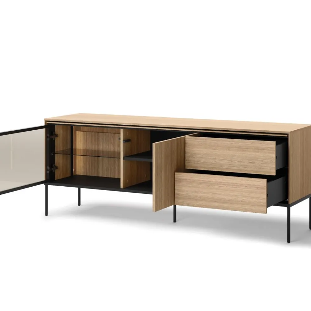 Szafka RTV Lenart VISSO VI-07 oferuje pojemne szuflady, które pomogą w organizacji wszystkich niezbędnych akcesoriów multimedialnych. Dzięki przestronnym szufladom bez trudu przechowasz piloty, kable, gry czy płyty, zawsze mając je pod ręką. Kolor dąb linearny nadaje szafce elegancki i naturalny wygląd, który doskonale komponuje się z różnymi stylami aranżacyjnymi. Solidna konstrukcja zapewnia trwałość i wytrzymałość, co gwarantuje, że mebel posłuży przez wiele lat. To idealny wybór do nowoczesnego salonu, który łączy styl i funkcjonalność w jednym.