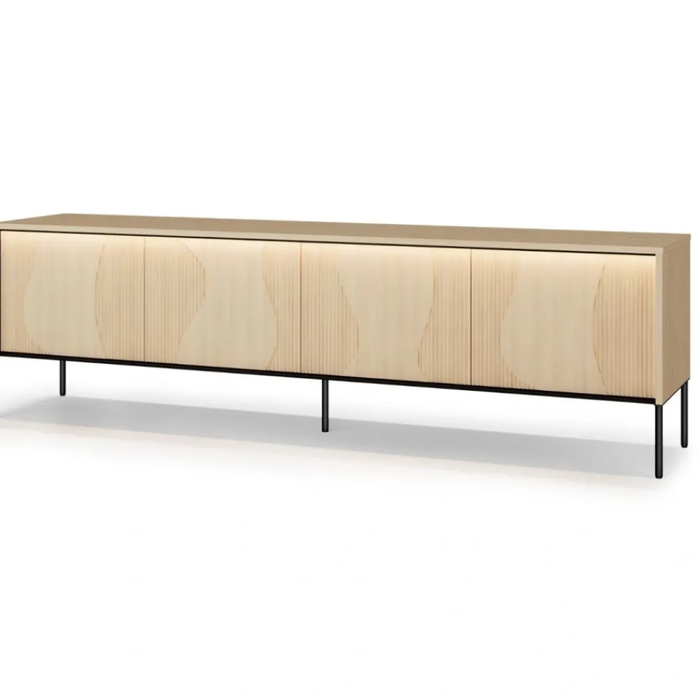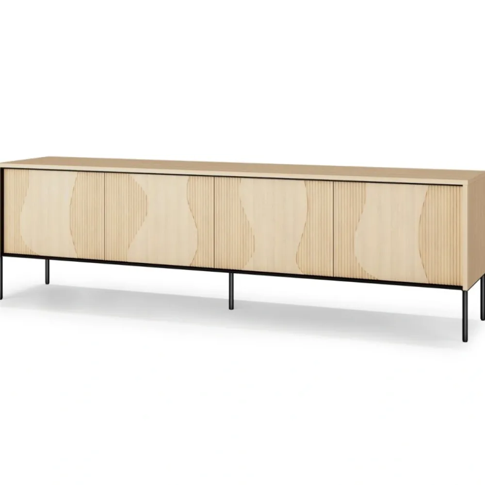 Designerska szafka RTV z frezowanymi frontami, która przyciąga uwagę