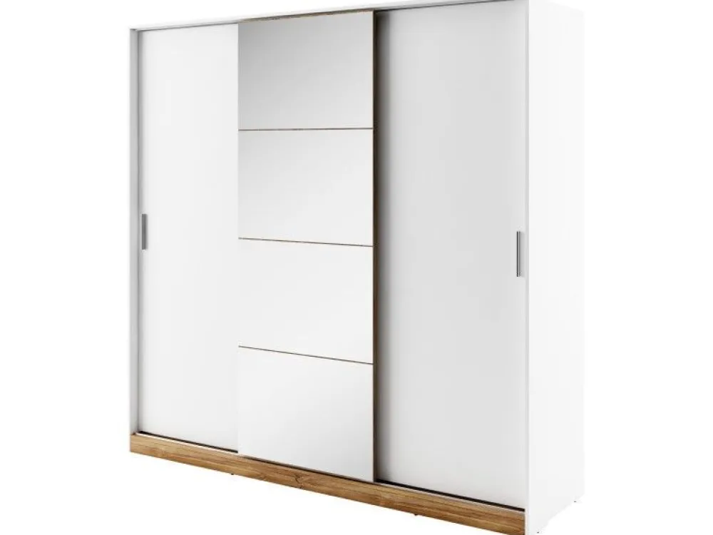 Pojemna i praktyczna szafa to klucz funkcjonalnej sypialni. Dzięki swojej konstrukcji pomieści wiele rzeczy, może zostać rozbudowana o funkcjonalne kontenerki – idealne do przechowywania bielizny lub drobniejszych rzeczy osobistych: produkt o kodzie: ID-13. We wnętrzu pojemne półki, 2 drążki ubraniowe oraz dodatkowe, wolne przestrzenie, które z powodzeniem pomieszczą większe rzeczy, takie jak deskę do prasowania oraz walizki podróżne.