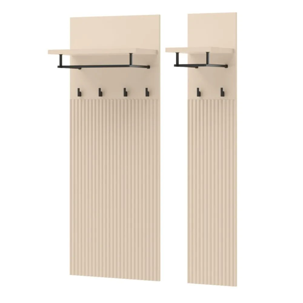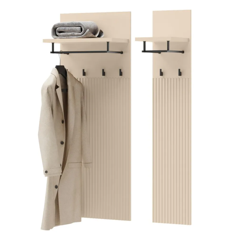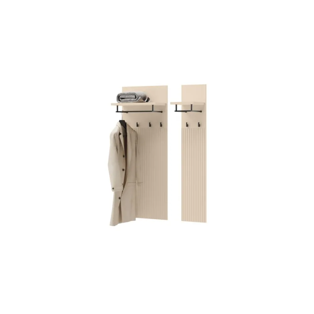 Wieszak do garderoby z kolekcji TREND to niezbędny element wyposażenia w każdej dobrze zorganizowanej przestrzeni do przechowywania. Montowany na ścianie, pozwala wygodnie odwieszać odzież wierzchnią, torebki czy dodatki. Jego solidna konstrukcja z laminowanej płyty wiórowej gwarantuje stabilność nawet przy intensywnym użytkowaniu. Stylowy design w beżowym odcieniu nadaje garderobie harmonii i elegancji. To idealne rozwiązanie dla osób, które chcą zachować porządek, nie rezygnując z estetyki. Wieszak nie zajmuje dużo miejsca, a jednocześnie jest bardzo praktyczny.