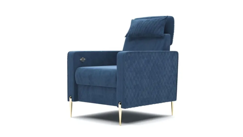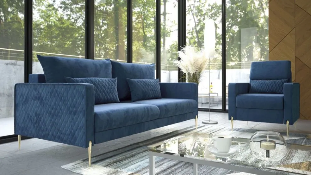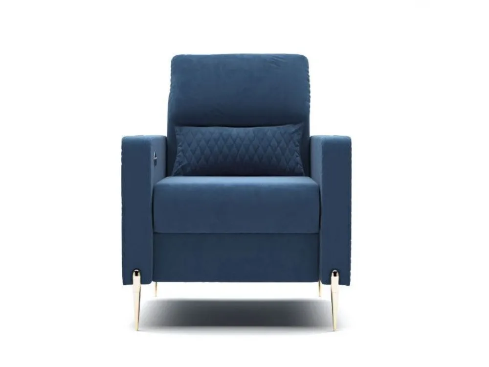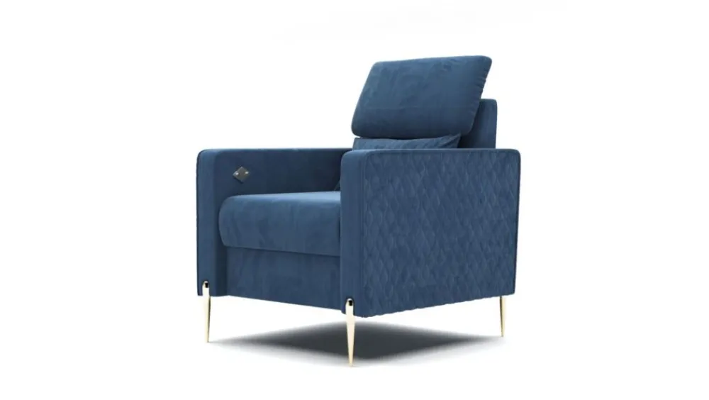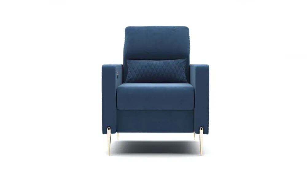 Fotel Garda zachwyci Cię swoim wyglądem i komfortem użytkowania. Delikatne pikowania na bokach i poduszce przełamują prostą formę kanapy. Wysokie, smukłe nóżki w kolorze złota nadają mu niesamowitego stylu. Aby stworzyć elegancki komplet wystarczy zakupić kanapę z tej samej kolekcji.