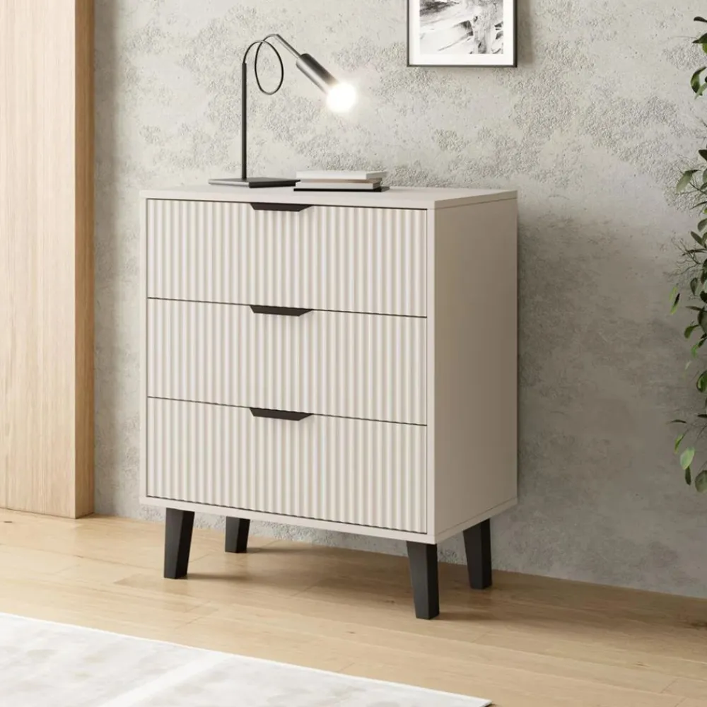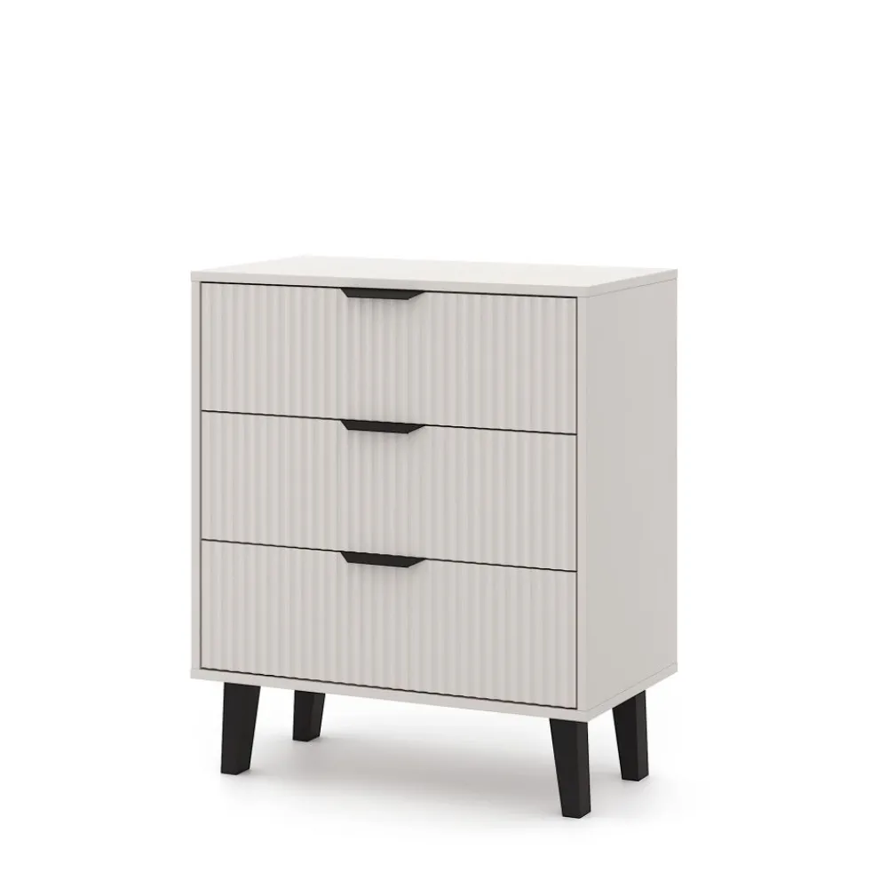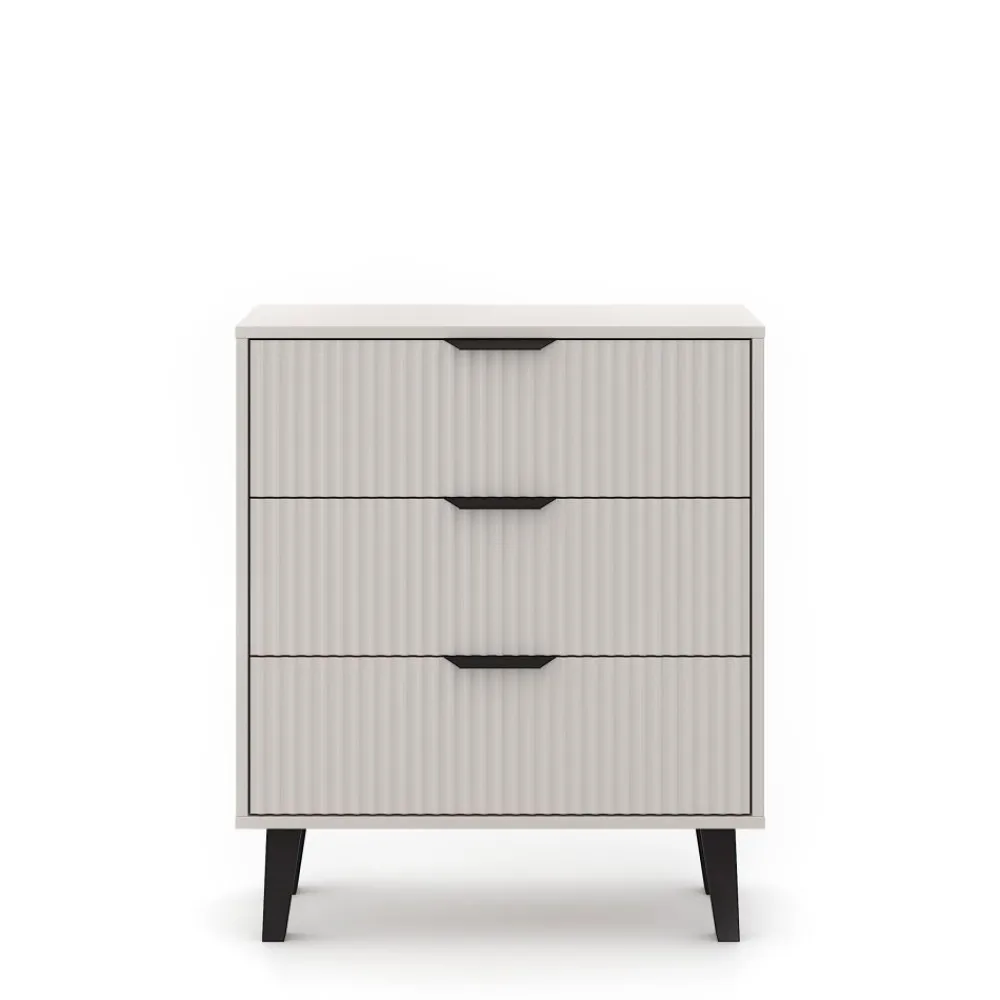 Dzięki swoim kompaktowym wymiarom komoda 3S świetnie sprawdzi się w mniejszych pomieszczeniach, ale równie dobrze odnajdzie się jako część większego zestawu. Jej uniwersalna bryła i delikatna kolorystyka ułatwiają dopasowanie do różnorodnych stylów wnętrzarskich.