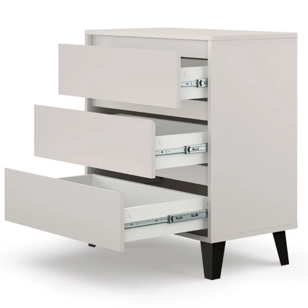 Beżowa komoda z 3 szufladami z kolekcji BORG to doskonały wybór dla osób, które szukają kompaktowego, ale pojemnego mebla do przechowywania. Dzięki trzem szerokim szufladom z łatwością zorganizujesz przestrzeń – niezależnie od tego, czy potrzebujesz miejsca na bieliznę, ubrania, dokumenty, czy inne domowe akcesoria. Subtelny odcień beżu wprowadza do wnętrza spokój i elegancję, idealnie komponując się z jasnymi, drewnianymi i naturalnymi dodatkami.
