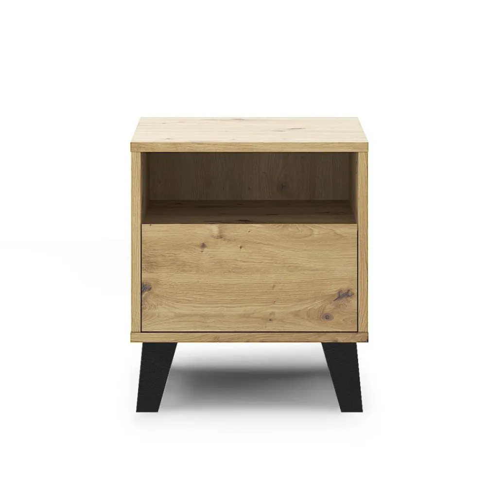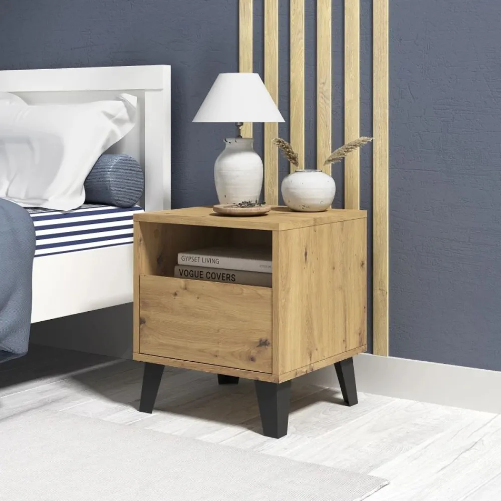 Szafka nocna z kolekcji BORG w kolorze dąb artisan z szufladą i półką to praktyczny i elegancki element każdej sypialni. Jej kompaktowy design i funkcjonalne cechy sprawiają, że idealnie nadaje się do przechowywania rzeczy, które chcesz mieć pod ręką przy łóżku, takich jak książka, okulary, telefon czy telefon.
