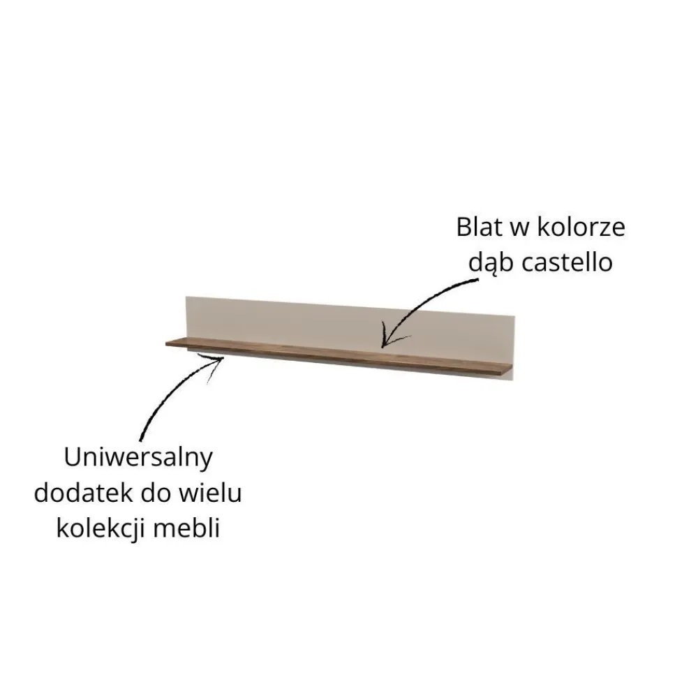 Półka wisząca EVO EO-05 o długości 150 cm to doskonałe rozwiązanie, które pozwala efektywnie wykorzystać przestrzeń na ścianie. Dzięki swojej długości oferuje dużo miejsca na przechowywanie książek, dekoracji, czy innych przedmiotów, które chcesz mieć pod ręką. Zawieszona na ścianie, pozwala zaoszczędzić miejsce na podłodze, co jest szczególnie ważne w mniejszych pomieszczeniach. Jej subtelne kolory – kaszmir i dąb castello – dodają wnętrzu ciepła i przytulności, harmonijnie komponując się z różnymi stylami aranżacji. Dzięki temu półka nie tylko pełni funkcję praktyczną, ale również staje się dekoracyjnym elementem każdego wnętrza. Jest to idealny sposób na stworzenie funkcjonalnej, a zarazem stylowej przestrzeni.