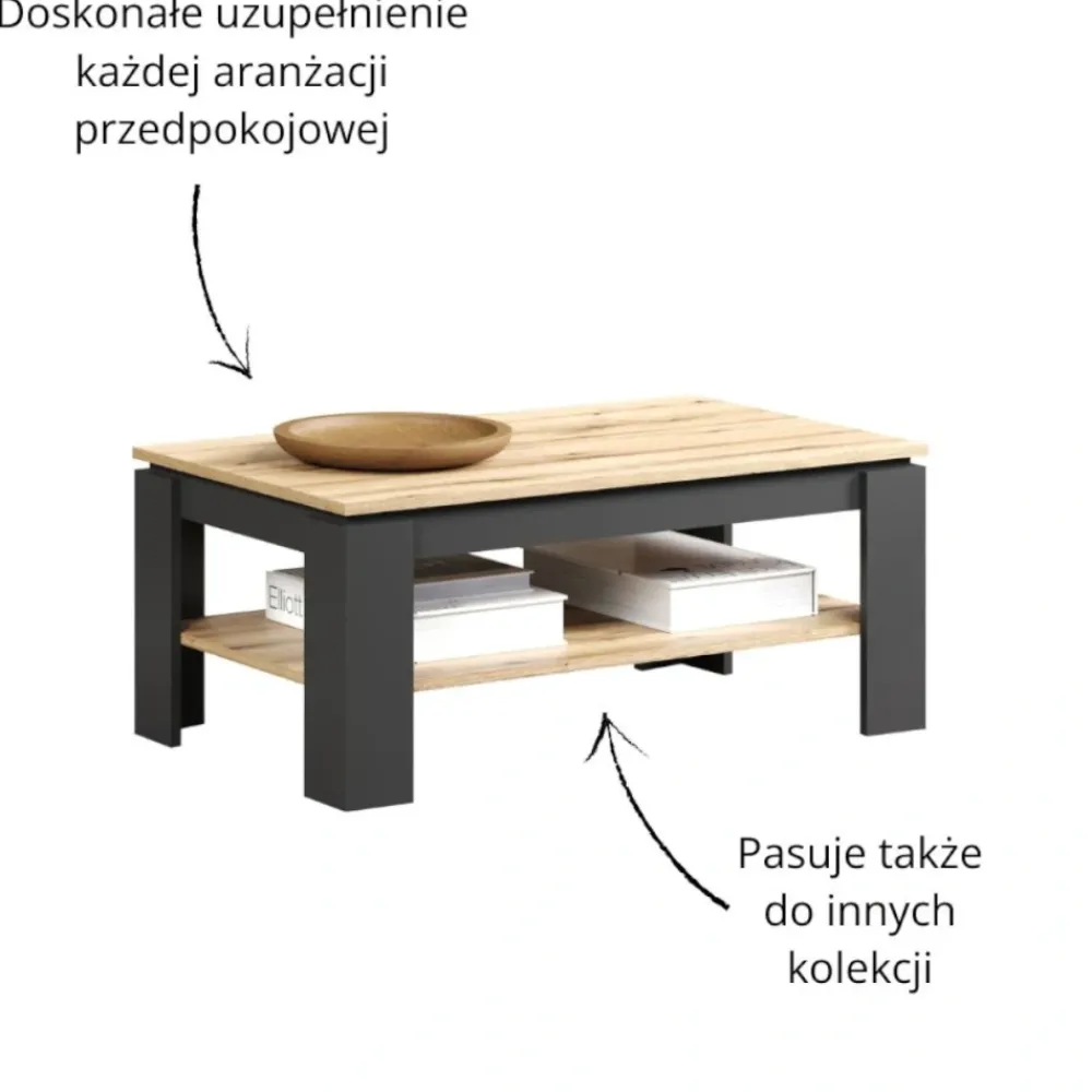 Nowoczesny stolik kawowy w kolorze grafit/dąb evok Esteban