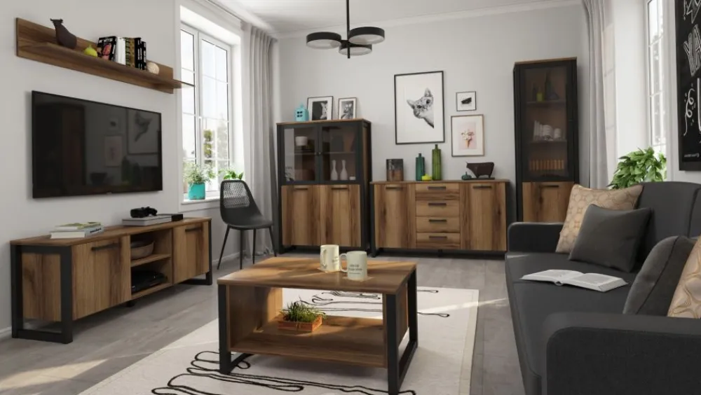 Mares, to kolejna propozycja mebli w stylu loft, którą zaprezentował Mebelbos. Świetnie prezentujące się, idealnie wpasujesz je jako meble do salonu oraz meble do jadalni. Seria Mares charakteryzuje się klasyczną formą, wykończenie to wyjątkowy odcień dębu oraz dekoracyjne, loftowe czarne uchwyty oraz nogi. W skład kolekcji Mares wchodzą m. in komoda z szufladami, regał, witryna wysoka i niska, szafka RTV, ława, szafa, półka wisząca, ława, stół rozkładany i dwudrzwiowa szafa z szufladą.