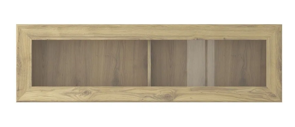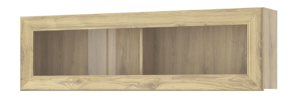 Regał posiada dwie półki zamkniętych za przeszklonymi drzwiami.