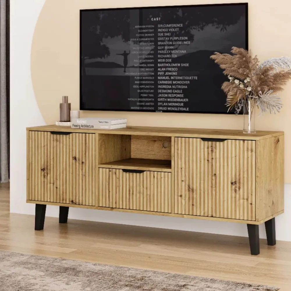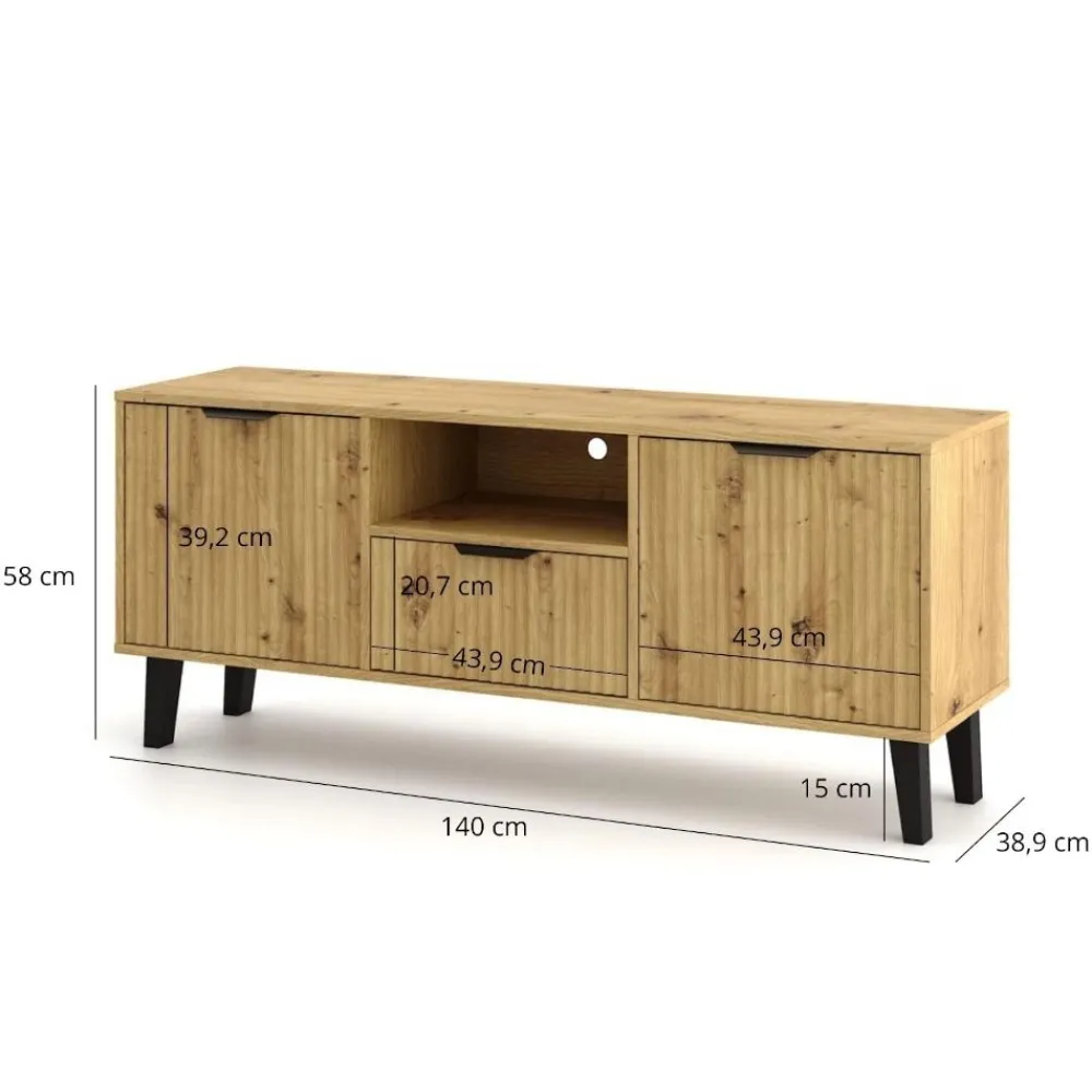 Wśród najważniejszych elementów kolekcji wyróżnia się pojemna szafka RTV 2D1S, możemy ustawić na niej telewizor, we wnęce zmieści się dekoder satelitarny lub odtwarzacz blu-ray. Dodatkowym atutem są dwie szafki – z lewej oraz prawej strony – co pozwala ukryć różne rzeczy, których w danym momencie nie potrzebujemy.