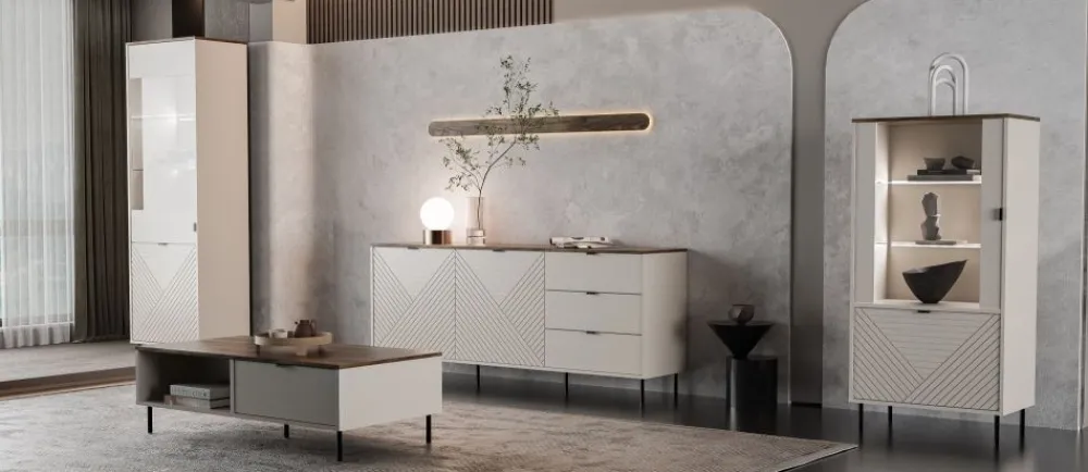Wysoka witryna do salonu – elegancka i stylowa