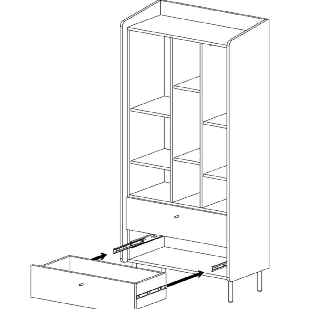 Regał do pokoju młodzieżowego Meblar Alessio AE6 oferuje mnóstwo przestrzeni do przechowywania, co jest niezwykle ważne w młodzieżowym pokoju. Dzięki licznym półkom i szufladom, regał pozwala na efektywne przechowywanie książek, dekoracji, sprzętu elektronicznego oraz innych przedmiotów. Regał młodzieżowy Alessio AE6 umożliwia łatwą organizację i utrzymanie porządku, co jest kluczowe dla komfortu i funkcjonalności przestrzeni. Szuflady zapewniają dodatkowe miejsce na przedmioty, które warto ukryć przed wzrokiem, co pozwala na zachowanie estetyki wnętrza. Dzięki temu każdy pokój nastolatka stanie się bardziej uporządkowany i przyjazny.