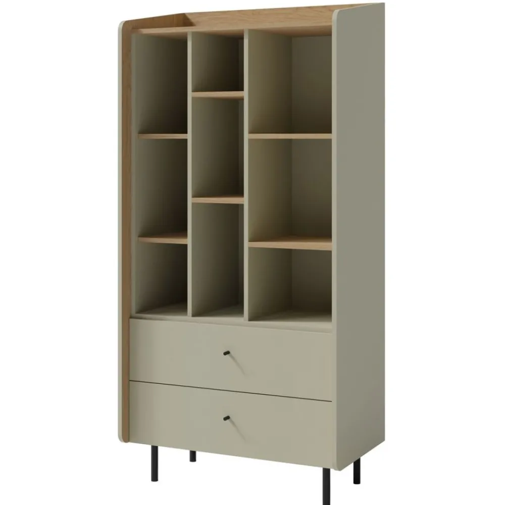 Regał z szufladami Meblar Alessio AE6 łączy w sobie nowoczesny design i elegancję, idealnie komponując się z młodzieżowym stylem pokoju. Kolor eukaliptus nadaje wnętrzu świeżości i naturalnego uroku, tworząc harmonijną przestrzeń. Wykończenia w kolorze dąb Baltic Dune dodają ciepła i subtelnej elegancji, podkreślając wyjątkowy charakter regału. To stylowy regał do pokoju, który nie tylko pełni funkcję praktyczną, ale również stanowi atrakcyjny element dekoracyjny. Dzięki niemu każdy pokój młodzieżowy nabiera wyjątkowego charakteru i przytulności.