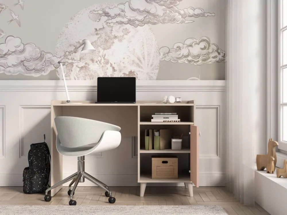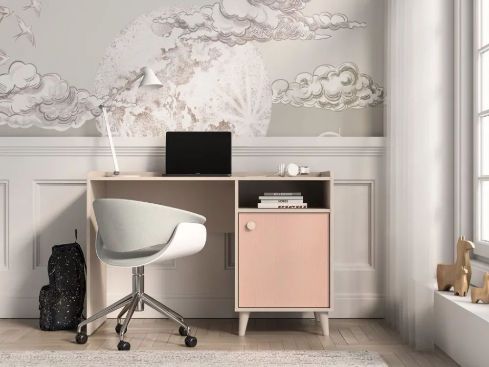 Biurko Mevel 07 to idealny mebel do pokoju dziecka idącego do szkoły. Szeroki blat pozwoli na wygodne odrabianie lekcji, efektywną naukę, a także zapewni miejsce do rozwijanie swoich pasji. Bryła wyposażona jest w wygodną wnęką pod blatem. Twoja pociecha z łatwością odłoży tam niepotrzebne w danym momencie zeszyty czy książki. Prawą stronę mebla tworzą również dwie pojemne, zamykane wnęki. Schowacie w nich podręczniki czy przybory szkolne. Dzięki obniżonemu wieńcowi górnemu oraz dodatkowej tylnej listwie przedmioty należące do Twojego dziecka będą zabezpieczone przed upadkiem. Już żadna kredka czy długopis nie spadnie za biurko. • Współczesny design. • Zaokrąglone rogi. • Wysoka funkcjonalność. • Duże, ergonomiczne uchwyty. • Nóżki o odpowiedniej wysokości. • System cichego domykania.