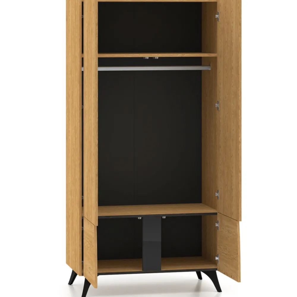 Szafa Toscania 01 została zaprojektowana z dbałością o każdy detal. Wyprofilowane, metalowe nóżki zapewniają stabilność konstrukcji, a jednocześnie dodają meblowi lekkości i charakteru. Wygodny system otwierania push to open eliminuje konieczność stosowania tradycyjnych uchwytów, co ułatwia codzienne korzystanie. To nowoczesna, pojemna i stylowa szafa, która doskonale sprawdzi się zarówno w sypialni, garderobie, jak i w salonie jako elegancki element aranżacji.