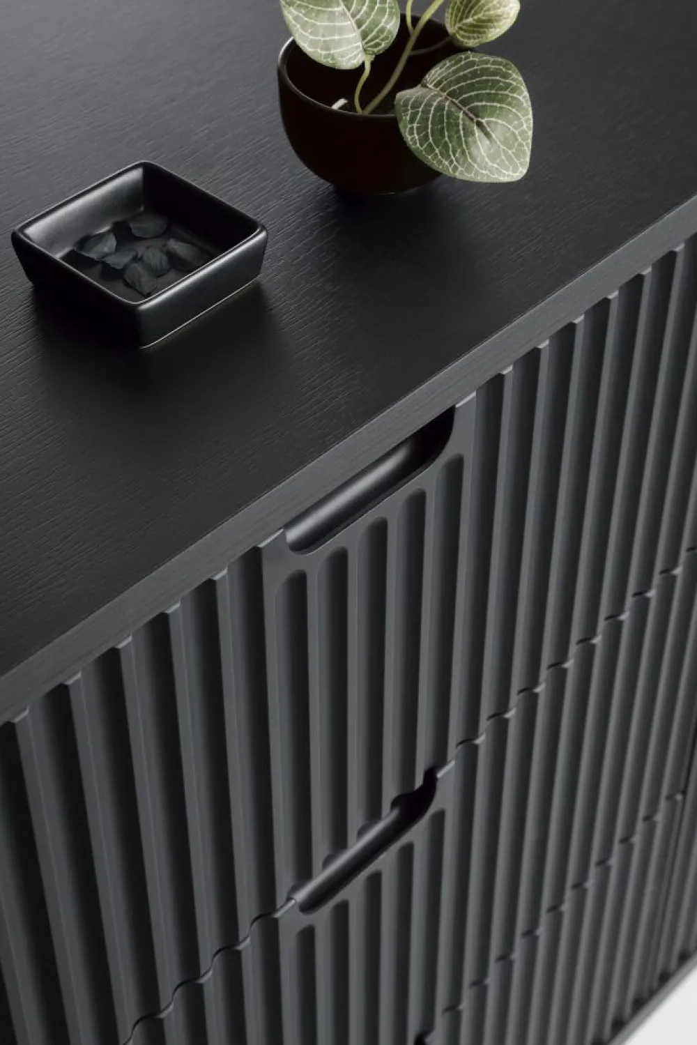 Komoda Zova to kwintesencja elegancji i nowoczesności, która przyciągnie wzrok każdego gościa. Jej nowoczesny design i harmonijna forma łączą się z wyrafinowanymi detalami, tworząc stylowy akcent w każdym salonie. Delikatnie zaokrąglone krawędzie dodają subtelności, a fronty zdobione ryflowanym wzorem wprowadzają niepowtarzalny charakter i głębię wizualną.