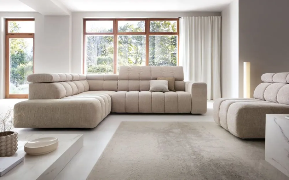 Pozwól, by narożnik Zurich z elektrycznym wysuwem siedziska stał się centrum Twojego domowego wypoczynku, dodając mu niepowtarzalnego charakteru i luksusowego klimatu.