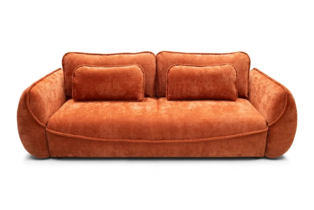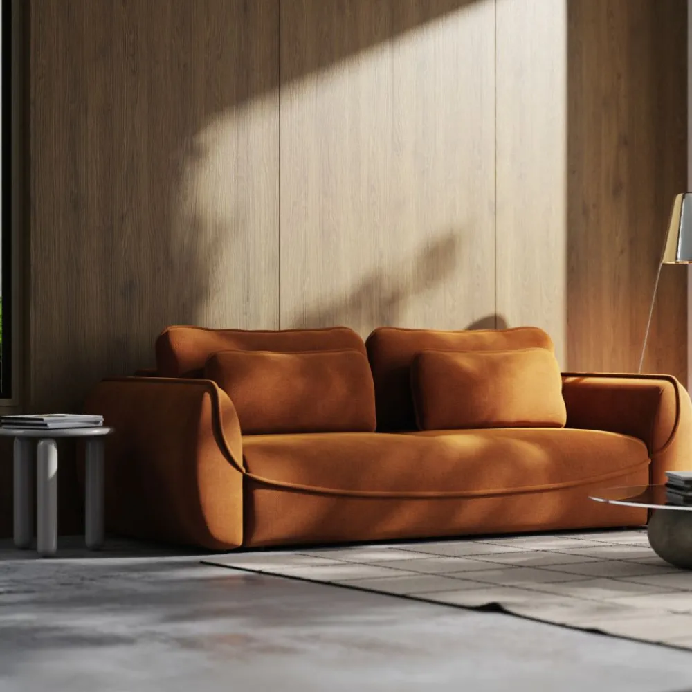 Wyjątkowy kształt kanapy Umea z zaokrąglonymi bokami i starannie wykończonymi detalami przyciąga wzrok i podkreśla charakter wnętrza. Ten model idealnie sprawdzi się zarówno w aranżacjach nowoczesnych, jak i w modnych przestrzeniach japandi czy industrialnych. Cynamonowa tkanina dodaje wnętrzu przytulności i naturalnego uroku.