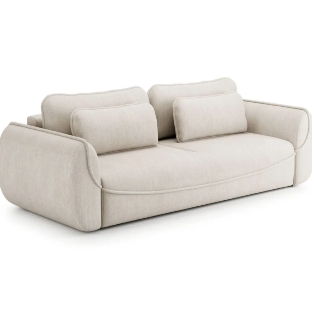 Model Umea nie tylko świetnie się prezentuje, ale też oferuje praktyczne rozwiązania. Pod siedziskiem znajduje się przestronny pojemnik na pościel – idealny do przechowywania kołder, poduszek lub koców. Sofa rozkłada się szybko i wygodnie, oferując komfortowy sen dla dwóch osób. Beżowy kolor dodaje lekkości, przez co świetnie sprawdzi się nawet w mniejszych pomieszczeniach.