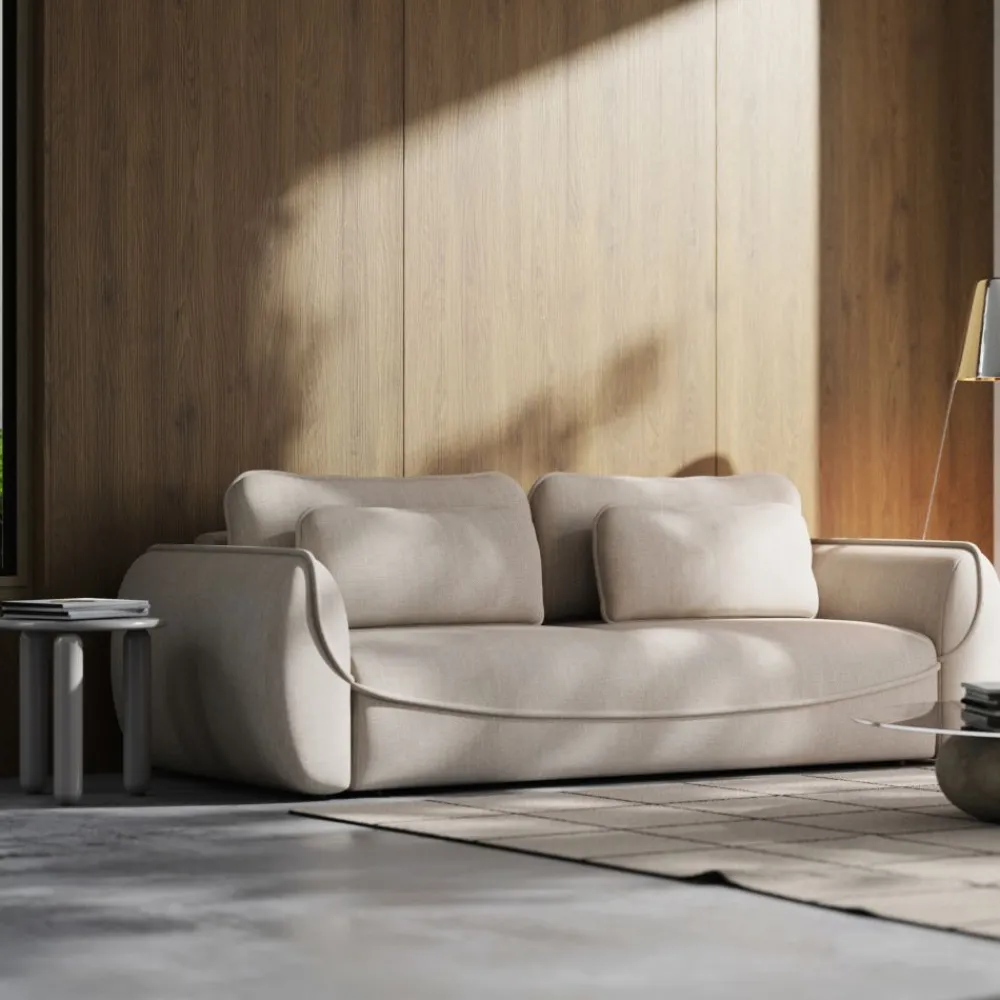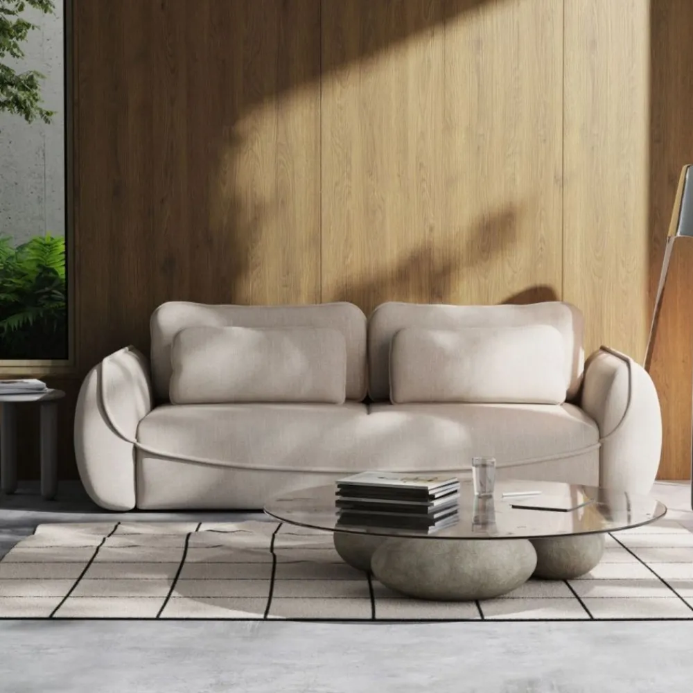 Beżowa kanapa Umea z funkcją spania DL – elegancja w stylu japandi