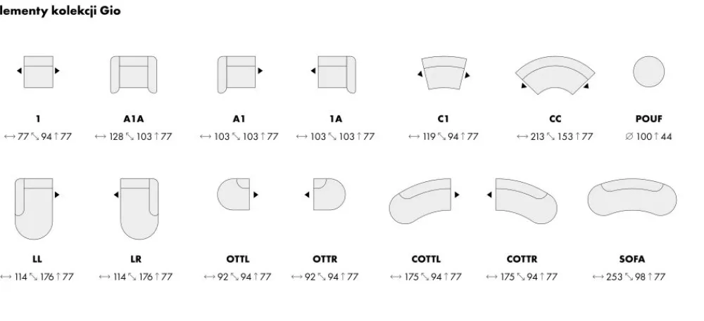 Pomimo swojego unikalnego kształtu, Gio nie traci na funkcjonalności. Mebel ten został zaprojektowany z myślą o różnorodnych potrzebach użytkowników. Dzięki modułowej konstrukcji, możesz dowolnie aranżować poszczególne segmenty, dostosowując narożnik do swojego wnętrza i potrzeb.