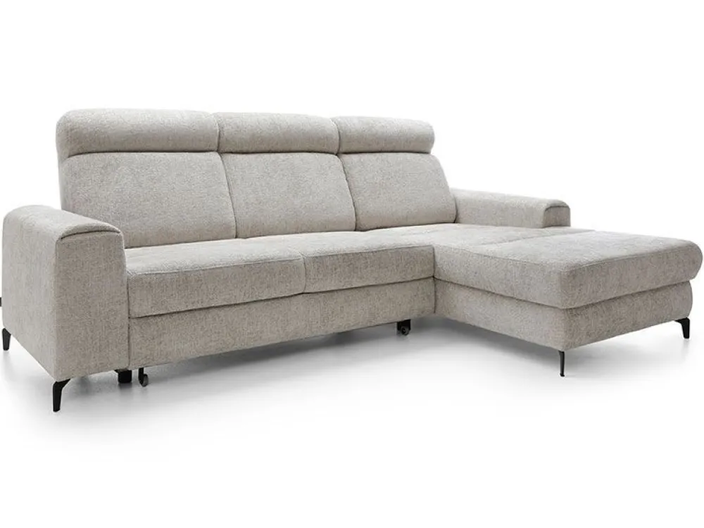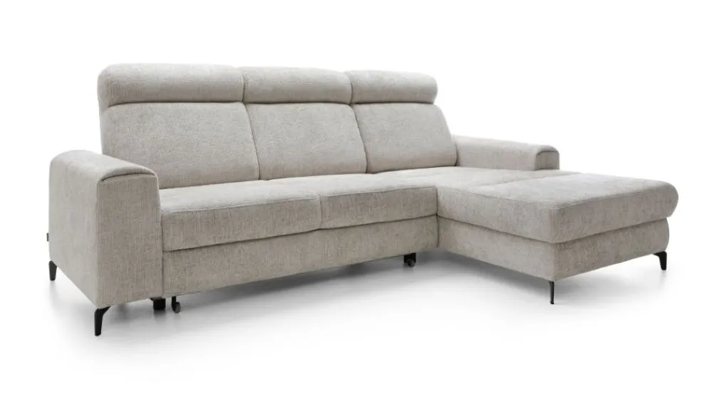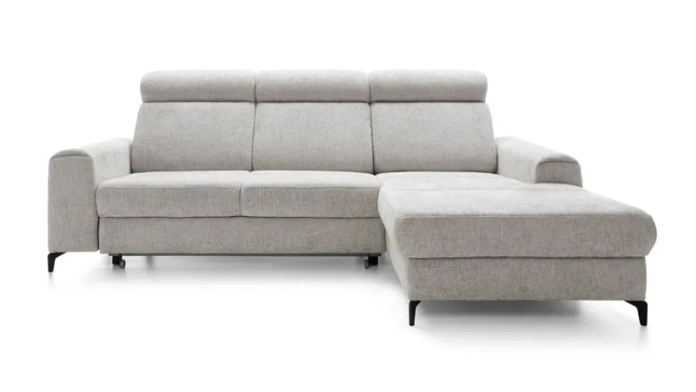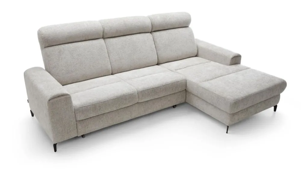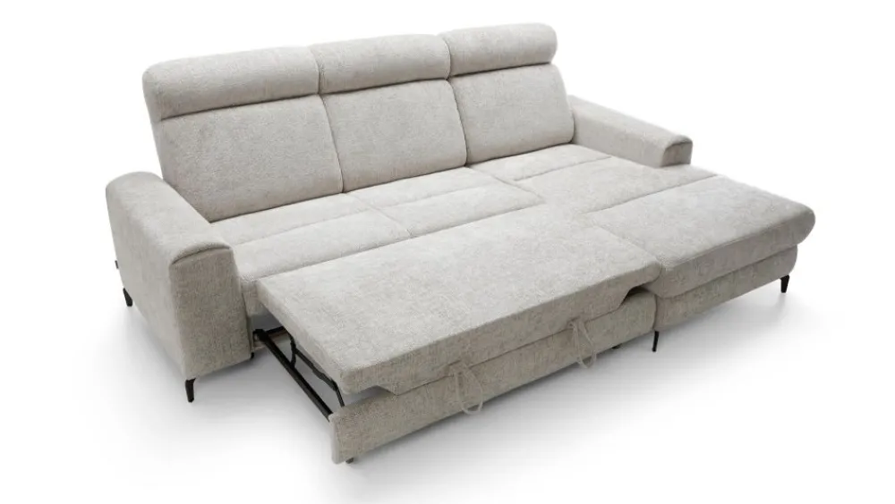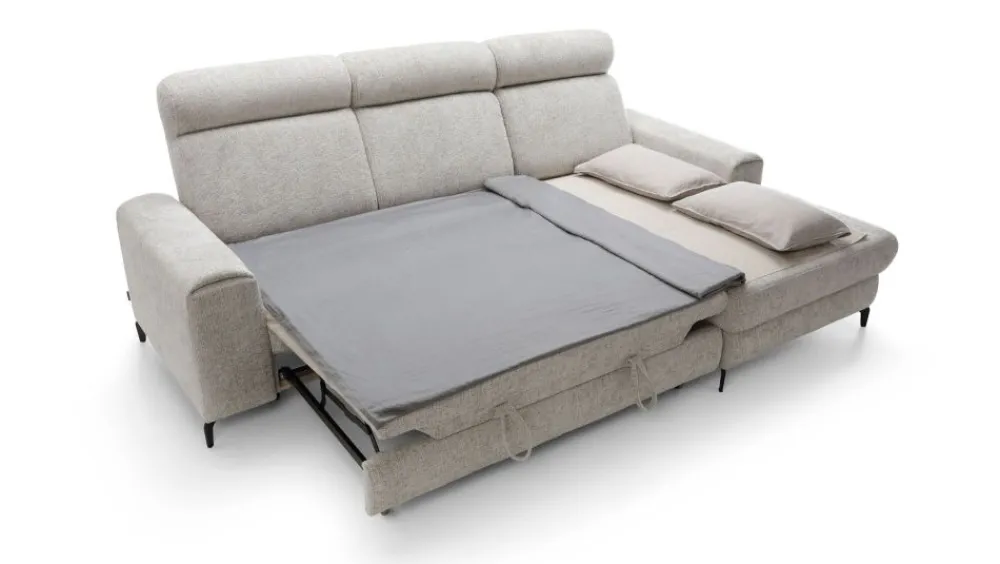 Narożnik w wypełnieniu posiada sprężyny faliste i piankę wysokoelastyczną zarówno na części siedziskowej jak i oparciowej, która rozkładana jest do spania. Funkcja spania typu delfin pozwala na stworzenie równej i dużej powierzchni spania (127×217 cm) przy tym zachowując ten sam komfort. Dodatkowym atutem jest pojemnik na pościel.