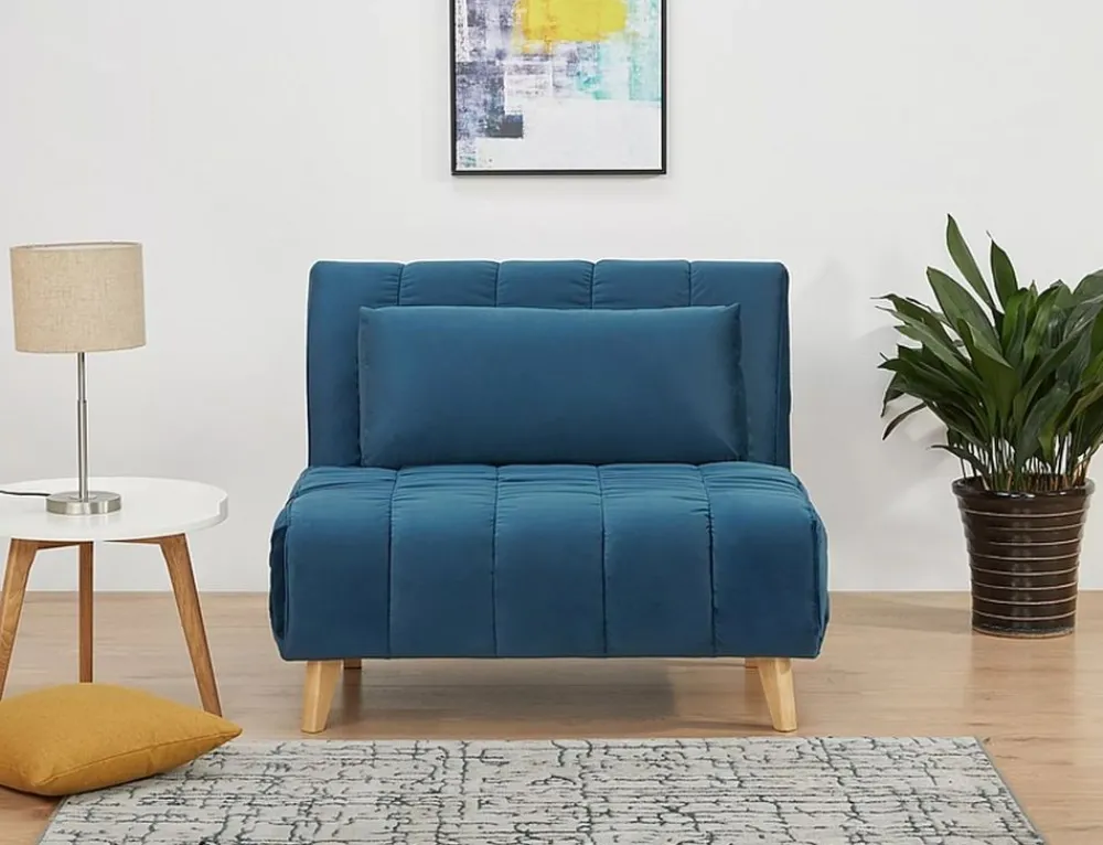 Fotel rozkładany: tkanina aksamit: niebieski, tap. 188 / drewno, kolor: buk.
