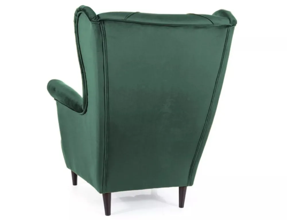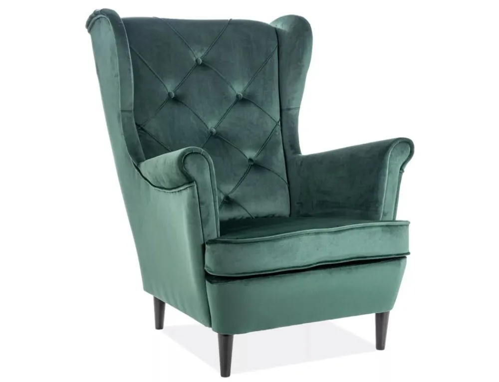 Fotel, tkanina aksamit, kolor: wg próbnika: Bluvel 78 – zielony , drewno, kolor: wenge.