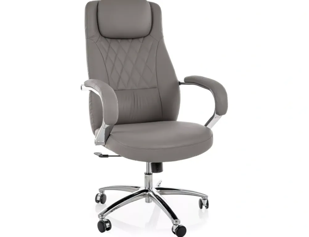 Fotel obrotowy, ekoskóra, kolor: szary, multiblock, regulowany zagłówek, stałe podłokietniki.