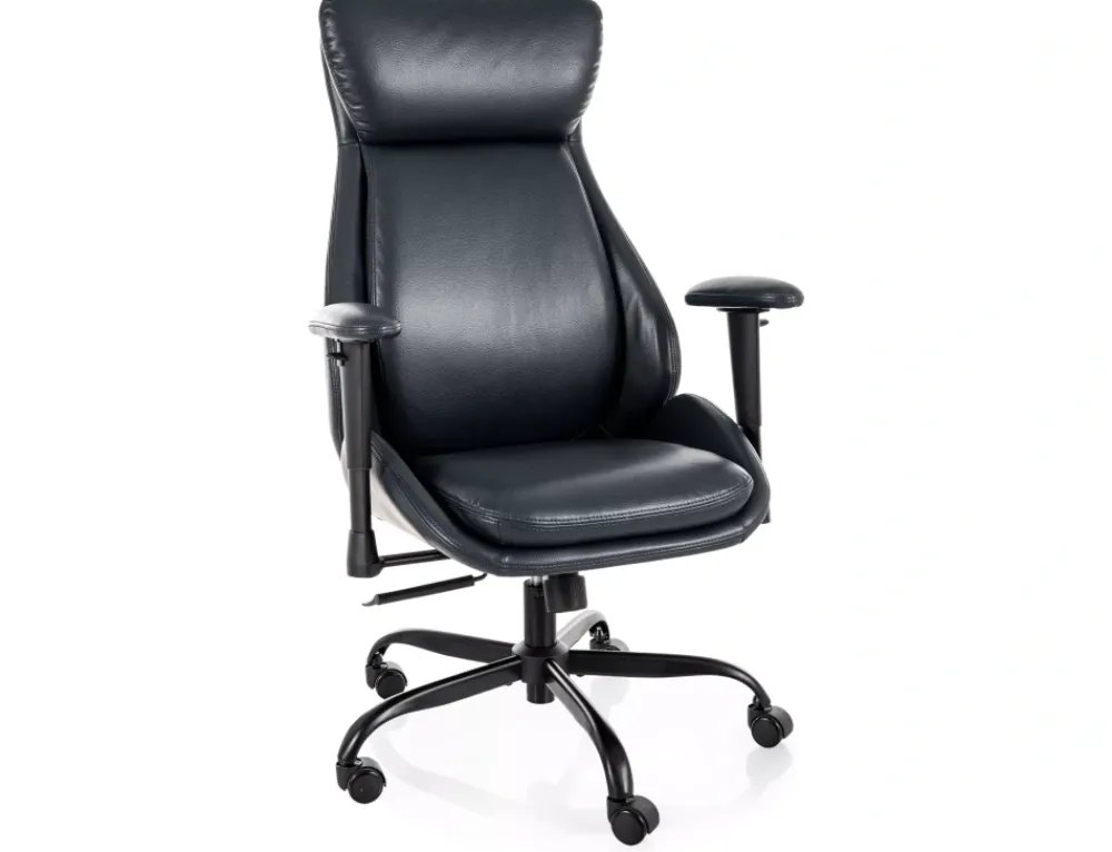 Fotel obrotowy, ekoskóra oddychająca, kolor: czarny, mechanizm TILT z funkcją blokady, regulowane podłokietniki.