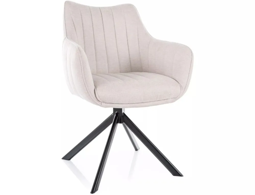 Krzesło, tapicerka: tkanina Brego 22, stelaż: metal, kolor: jasny beżowy / czarny mat.Funkcja auto-return – siedzisko obracane w zakresie 180st, z funkcją powrotu do pierwotnej pozycji.