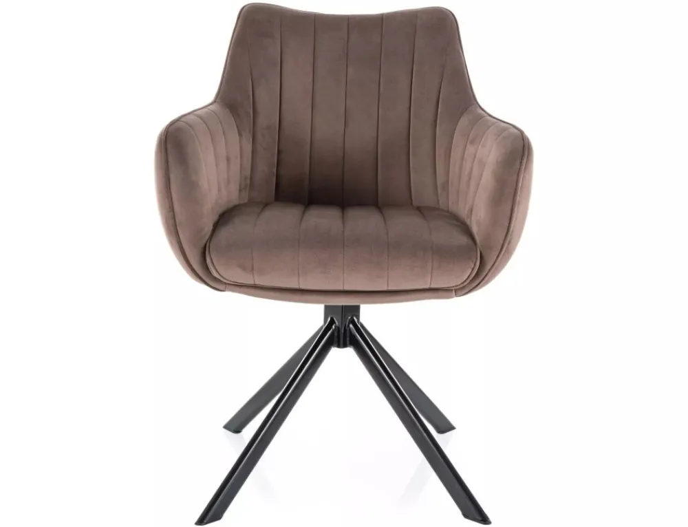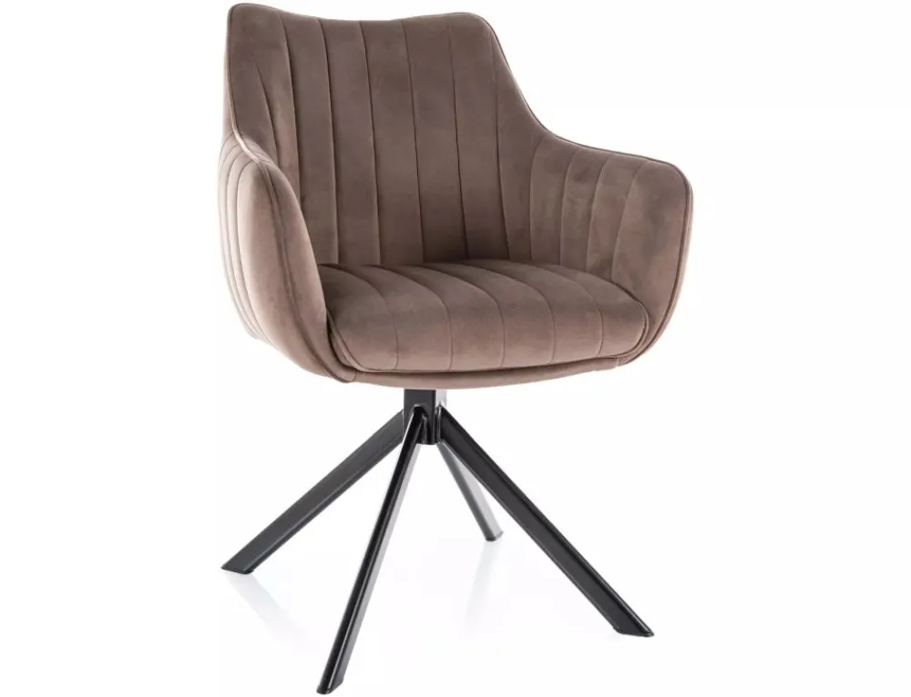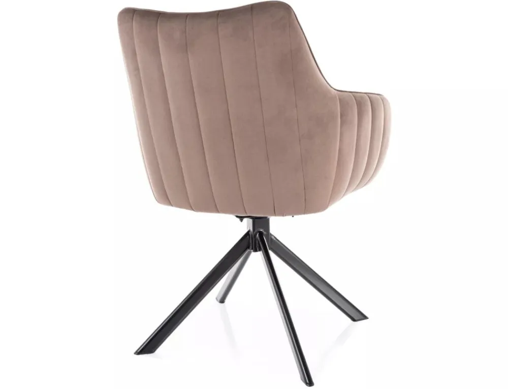 Krzesło, tapicerka: tkanina aksamit: Bluvel 38, stelaż: metal, kolor: cappuccino / czarny mat.Funkcja auto-return – siedzisko obracane w zakresie 180st, z funkcją powrotu do pierwotnej pozycji.