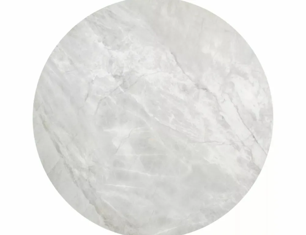 Zestaw ław, blat: ceramika, stelaż: stal nierdzewna, kolor: szary / chrom. Wymiary mniejszego stolika: średnica 60; wysokość: 38cm.