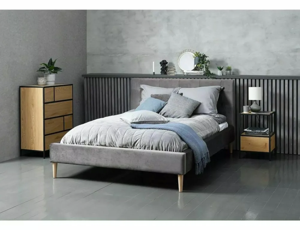 Szafka z szufladą, płyta laminowana, stelaż: metal, kolor: dąb / czarny mat. W kolekcji dostępne regał i komody. Wysokość nóżek – 10cm, wysokość szuflady 18,5cm, wysokość półki 26cm. Szuflada na prowadnicach z systemem „Push To Open”.