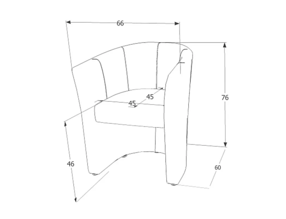 Wymiary fotela: A – 76, B – 67, C – 41, D – 47, E – 60, F – 3 cm