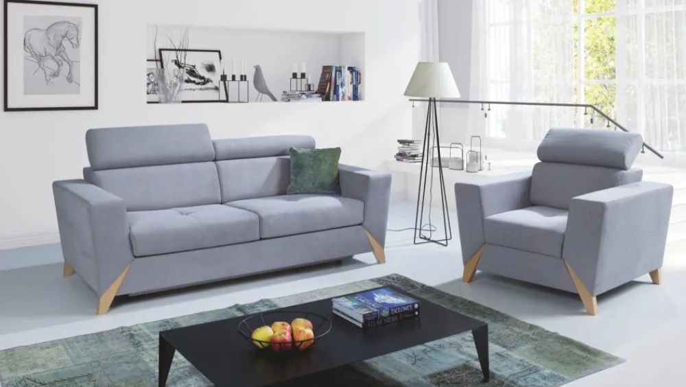 Model Salsa to stylowa sofa z praktycznymi, regulowanymi zagłówkami. Nowoczesna forma mebla oraz oryginalne połączenie boku z drewnianą nogą sprawdzi się zarówno w tradycyjnych, jak i nowoczesnych aranżacjach. Kanapa bez funkcji spania. Zastosowane w wypełnieniu połączenie sprężyn falistych oraz pianki wysokoelastycznej jest gwarancją pełnego komfortu odpoczynku. W wypełnieniu oparcia zastosowana równie komfortową wyprofilowana pianka poliuretanowa w połączeniu z pasami elastycznymi. Regulacja wysokości w zakresie: 85-99cm. Kanapa wykonana z dbałością o szczegóły. W kolekcji dostępna również sofa z funkcją, narożnik i fotel.