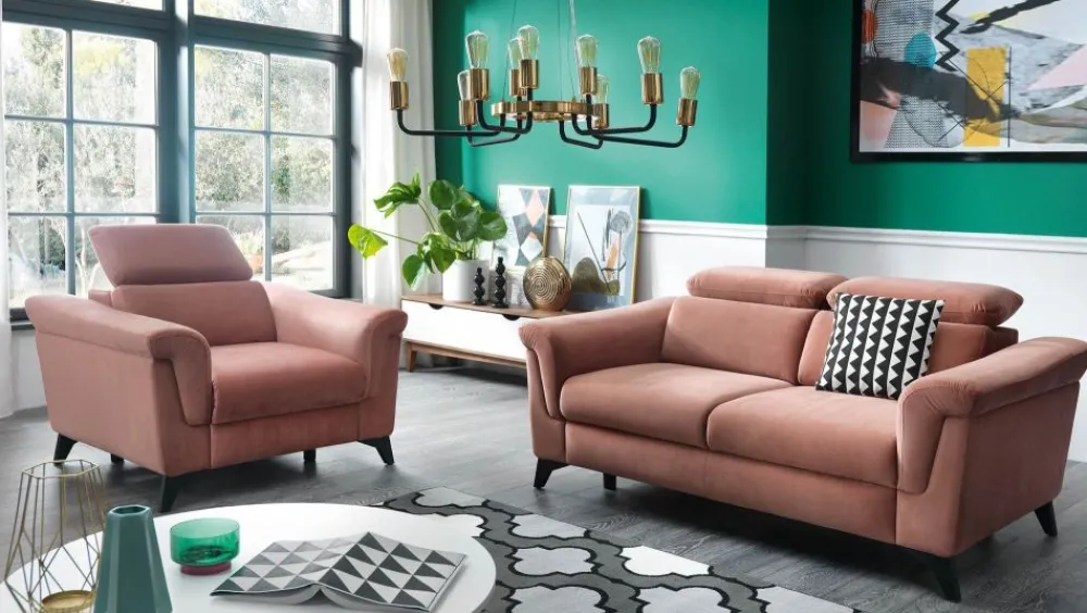 Kolekcja HAMPTON uwodzi opływową linią i designem. Wyprofilowane oparcie i regulowany zagłówek podnosi komfort codziennego użytkowania. Ciekawe, wywinięte podłokietniki wyglądają niezwykle elegancko i nowocześnie. Wysokie nóżki dodają lekkości, a przy tym są funkcjonalne ze względu na ułatwioną możliwość utrzymania czystości pod meblem. W kolekcji dostępne narożniki i kanapy w kilku wariantach, a także pufa uzupełniająca. Dostępne są bryły różnej wielkości – dzięki temu możemy tworzyć zestawy dopasowane do różnych powierzchni pomieszczeń.