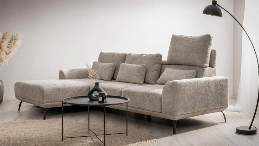 Solidna konstrukcja narożnika zapewnia nie tylko wygodę, ale także stabilność i bezpieczeństwo, co jest kluczowe w przypadku mebli używanych intensywnie przez całą rodzinę. Wytrzymałe materiały, z których wykonano ramę, gwarantują stabilność nawet podczas wieloletniego użytkowania. Konstrukcja narożnika została zaprojektowana z myślą o zapewnieniu maksymalnego komfortu i wsparcia dla ciała, co jest szczególnie ważne podczas długich godzin spędzonych na relaksie. Dodatkowo, użycie najwyższej jakości pianki i sprężyn w wypełnieniu siedzisk i oparć sprawia, że mebel doskonale dopasowuje się do kształtu ciała, zapewniając optymalne podparcie i wygodę.
