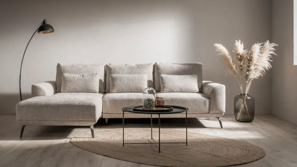 Ten narożnik, zaprojektowany w stylu nowoczesnym, idealnie wpisuje się w aktualne trendy wnętrzarskie. Prosta, lecz elegancka linia oraz dbałość o detale sprawiają, że mebel ten doskonale komponuje się z różnymi aranżacjami wnętrz, od minimalistycznych po bardziej wyraziste. Jego estetyka opiera się na harmonijnym połączeniu funkcjonalności z eleganckim wyglądem, co czyni go niezwykle uniwersalnym i ponadczasowym elementem wyposażenia wnętrza.