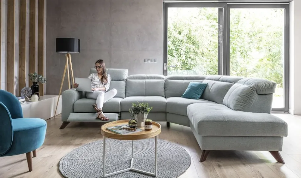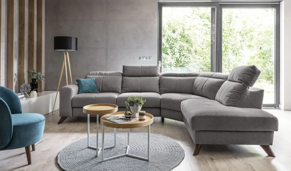 Kolekcja Imperio została stworzona, aby dostarczyć maksimum relaksu i odprężenia. Oferowana wersja posiada w standardzie regulowane zagłówki (wysokość całkowita mebla: 84-100 cm). Wypełnienie zdecydowanie należy do miękkich, otulających osobę siedzącą. Narożnik został osadzony na mocnych nogach wykonanych z litego drewna – kolor do wyboru z dostępnego wzornika. Uroku dodają charakterystyczne przeszycia na siedziskach i oparciach narożnika oraz ozdobne wciągi na boczku mebla.