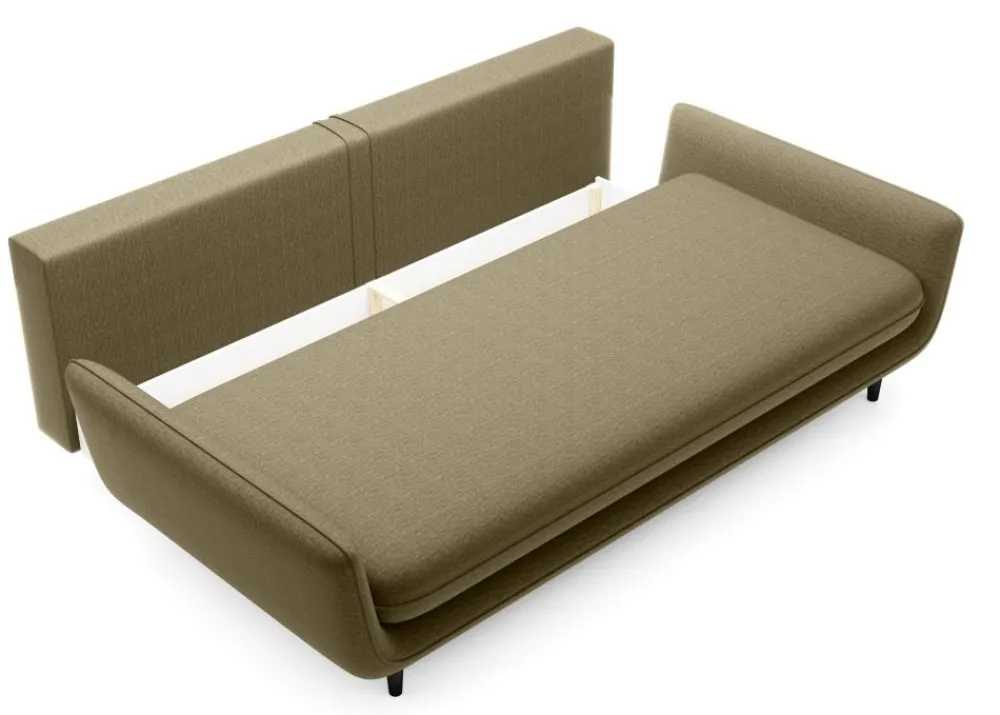 Sofa Solano to mebel wielozadaniowy. Zapewni Ci komfortowy wypoczynek w ciągu dnia oraz wygodne miejsce do spania. Jej prosty, minimalistyczny design sprawia, że mebel doskonale odnajdzie się zarówno nowoczesnym salonie, jak i w pokoju gościnnym. Duże, wygodne poduchy zapewnią Ci komfort podczas oglądania telewizji, korzystania z laptopa czy też chwili dla siebie z dobrą książką i pyszną kawą. Dodatkowym atutem tego modelu są wysokie nóżki, które zapewnią dość wolnej przestrzeni pod meblem, aby mógł tam swobodnie zmieścić się robot sprzątający. Dzięki takiemu rozwiązaniu zyskasz więcej czasu dla siebie. Sofa pasuje do wnętrz w stylu nowoczesnym, skandynawskim oraz minimalistycznym.