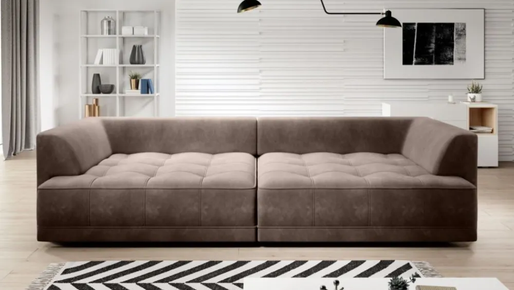Sofa Tiga uwiedzie Cię niezwykłym desingem oraz swoją funkcjonalnością. Duża ilość poduch wręcz zaprasza do błogiego wypoczynku. Pomysłowe zastosowanie elektrycznego wysuwu w obu siedziskach idealnie sprawdzi się nie tylko w codziennym wypoczynku, ale także w przypadku okazjonalnego wykorzystania kanapy do spania. Perfekcyjnie odnajdzie się zarówno w klasycznych jak i nowoczesnych wnętrzach. Jeżeli cenisz sobie klasykę z ciekawymi elementami dekoracyjnymi ten mebel jest dla Ciebie!