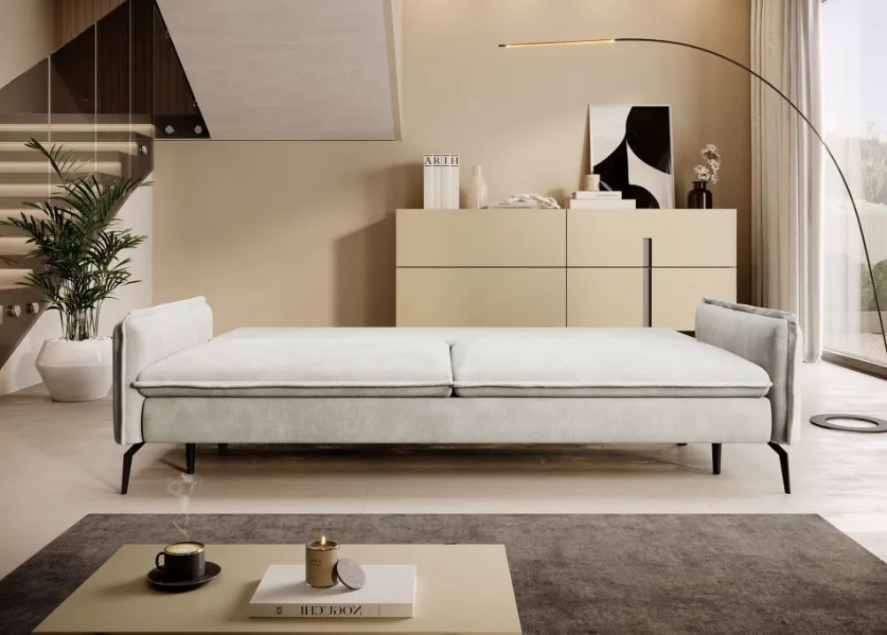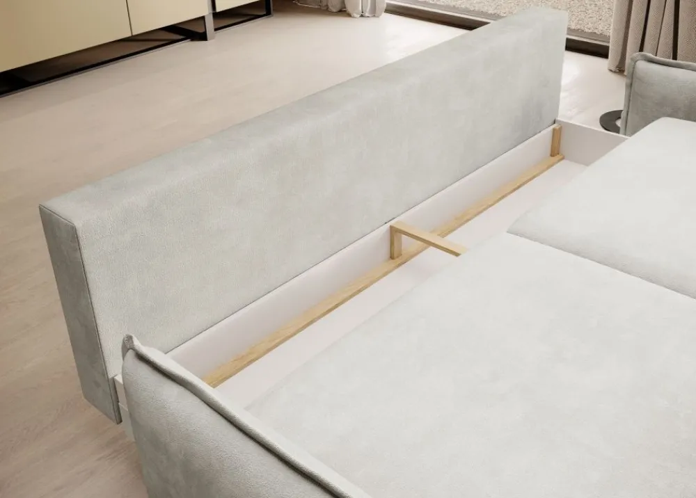 Dodatkowym atutem naszej sofy jest praktyczny pojemnik na pościel, który pozwala utrzymać porządek w salonie. Dzięki temu nie musisz martwić się o miejsce na koce czy poduszki – wszystko, co potrzebujesz do spokojnego snu lub relaksu, znajduje się w zasięgu ręki.