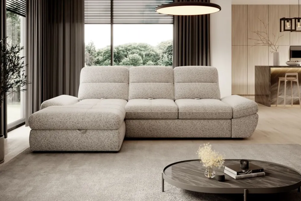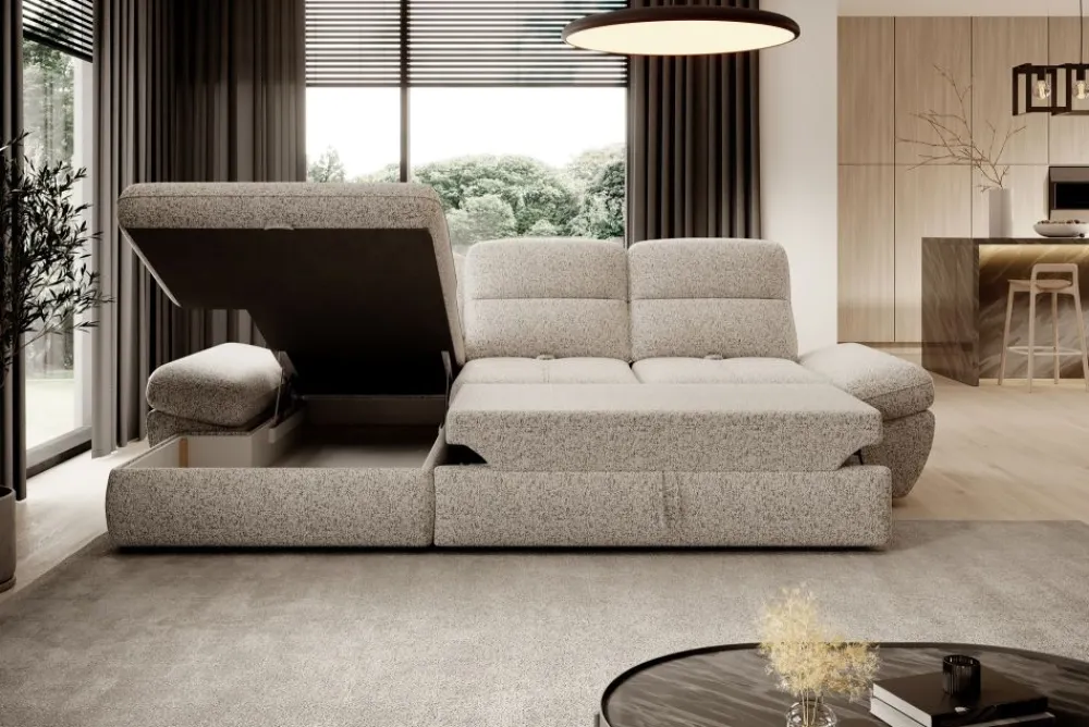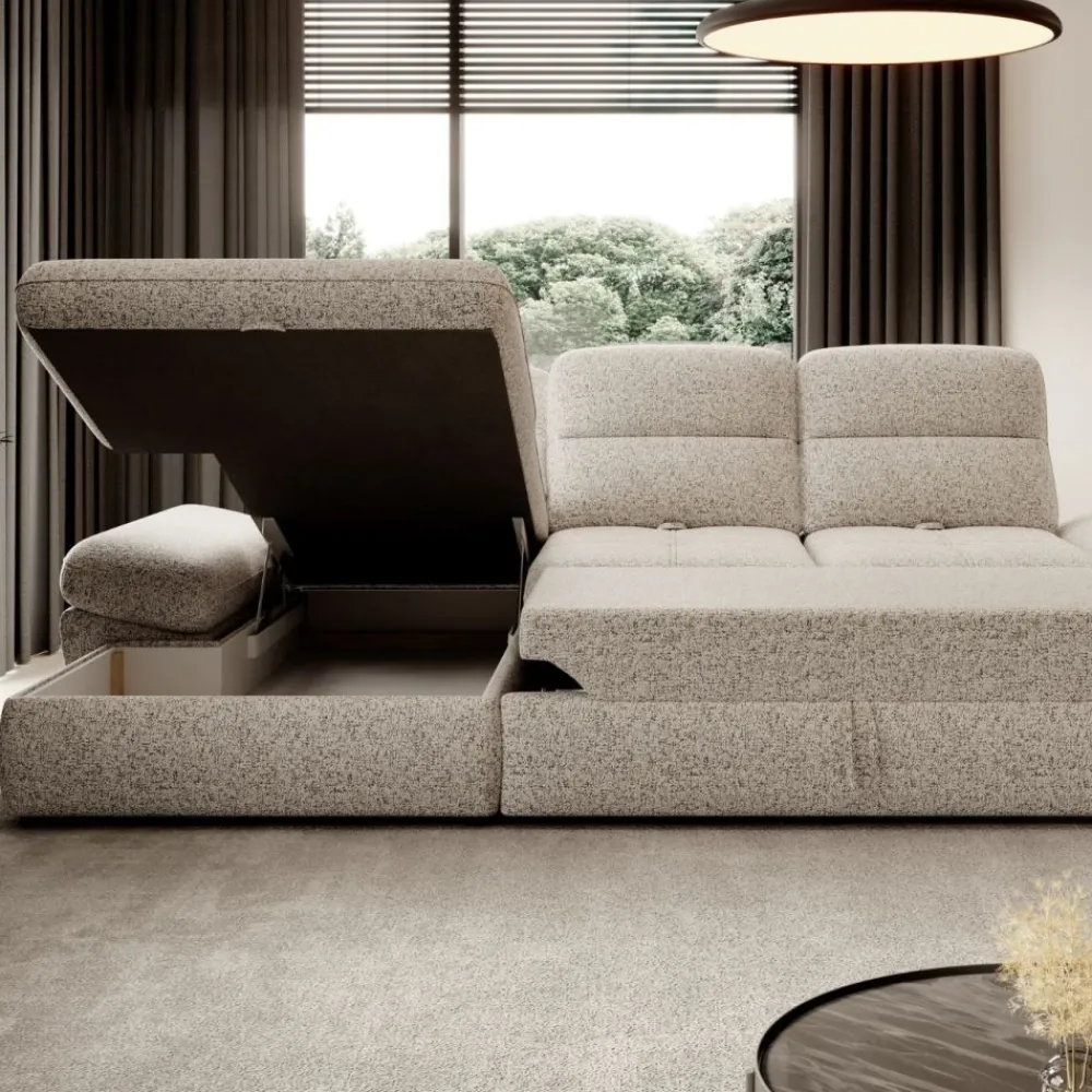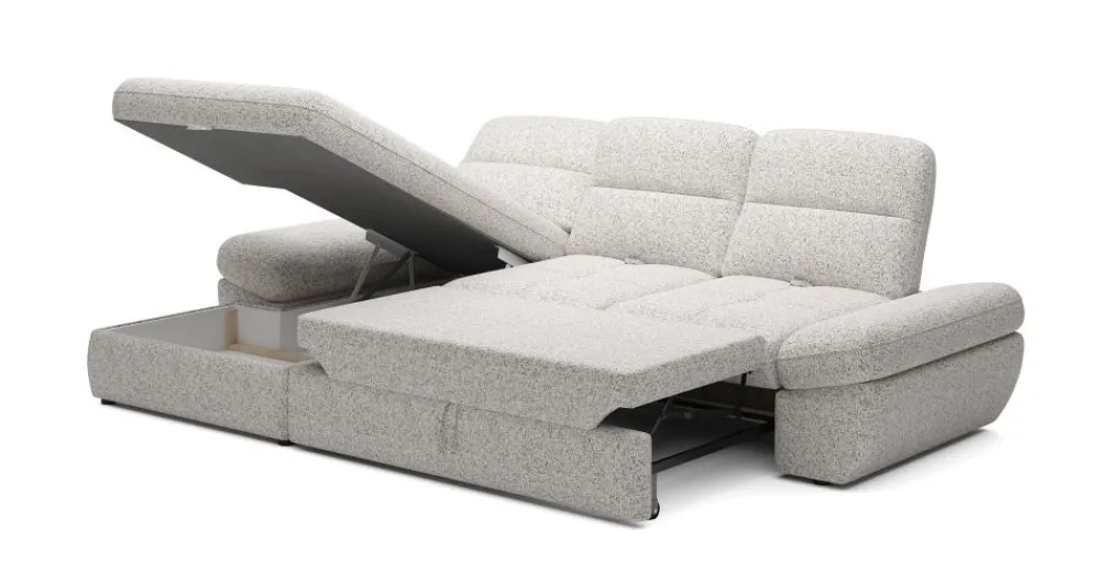Rozkładany narożnik z funkcją spania codziennego i pojemnikiem na pościel