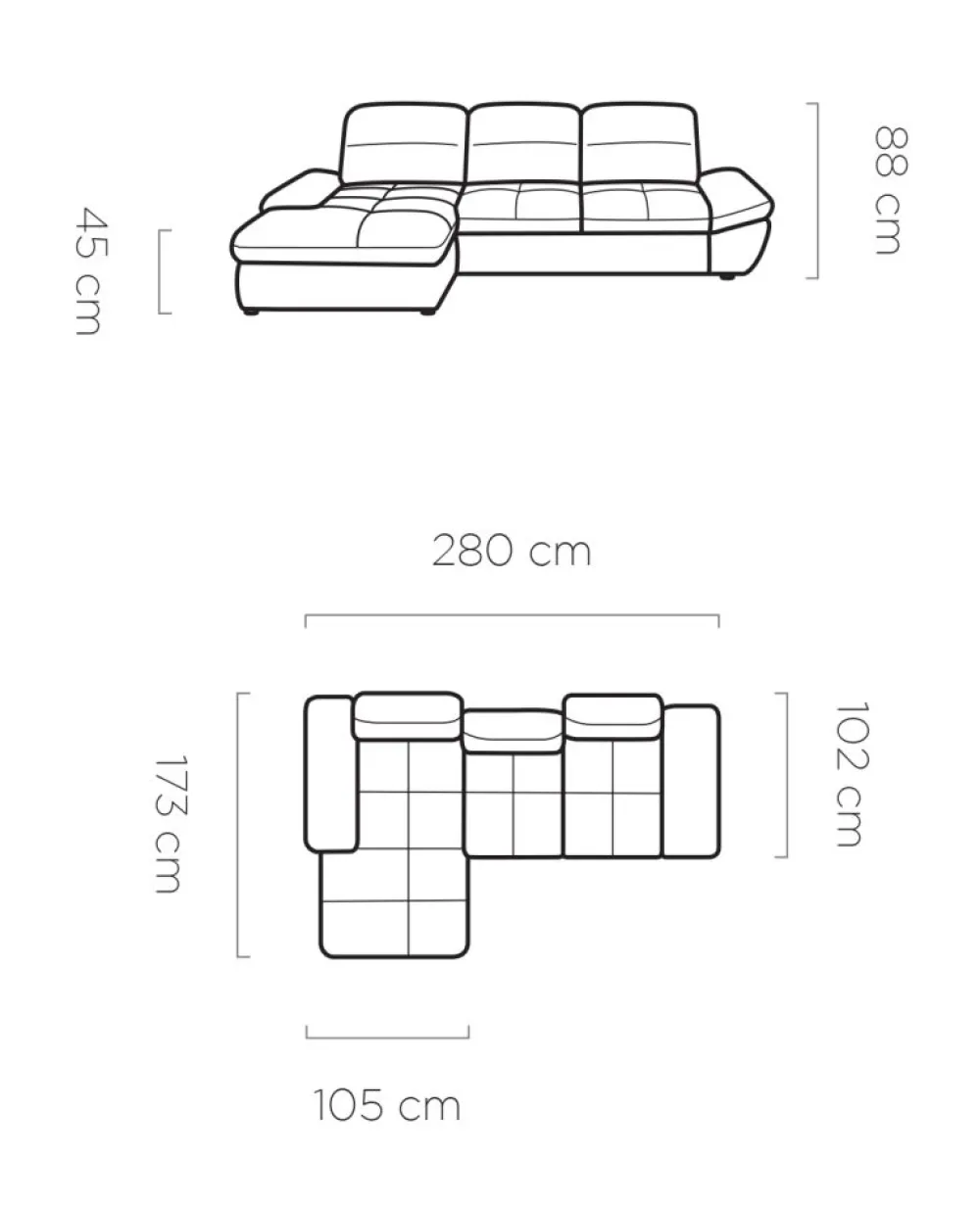 Galiano S to mały narożnik stworzony z myślą o niewielkich przestrzeniach, takich jak kawalerki czy salony w blokach. Dzięki nowoczesnemu kształtowi i jasnej, teksturowanej tkaninie, mebel z łatwością wpisuje się w estetykę współczesnych wnętrz. Kompaktowe wymiary (280 x 173 cm) sprawiają, że narożnik idealnie pasuje do mniejszych pomieszczeń, nie przytłaczając ich. Zaokrąglone kształty i staranne przeszycia nadają mu przytulny i elegancki wygląd. Mimo niewielkiej bryły oferuje bardzo wysoki komfort użytkowania. Ten narożnik do małego salonu łączy funkcjonalność z dopracowanym stylem.