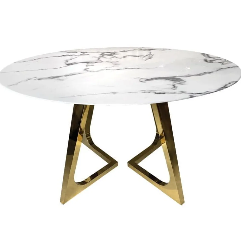 ArteHome Stoły*Stół okrągły Veneto z białym marmurowym blatem i złotymi chromowanymi nóżkami 130/130/76 cm