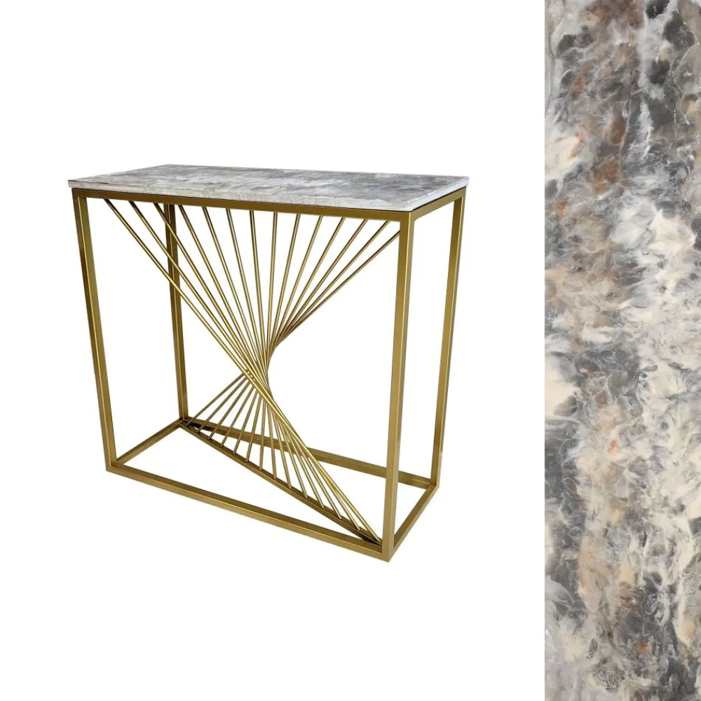 ArteHome Toaletki I Konsole*Konsola Gold Fala 90/25/82cm z blatem z żywicy epoksydowej industrialna metalowa