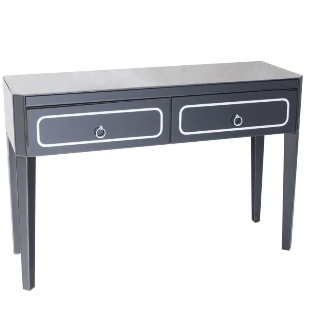 ArteHome Toaletki I Konsole*Konsola Marina 118/40/78cm z czarnego szkła na prostych nóżkach ze srebrnymi elementami