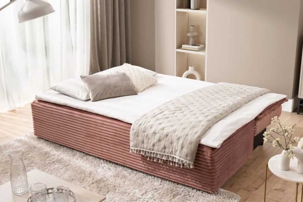 Funkcjonalność Firiozy to nie tylko rozkładane łóżko – to również praktyczny pojemnik na pościel. Wbudowana skrzynia pozwala przechować koce, poduszki lub inne przedmioty, które chcesz mieć pod ręką, ale schowane z widoku. To wygodne i sprytne rozwiązanie, które sprawdza się zwłaszcza w niewielkich przestrzeniach. Dzięki temu utrzymanie porządku w salonie staje się dużo łatwiejsze. Kanapa z funkcją spania i pojemnikiem to wybór praktyczny i przemyślany. Codzienne użytkowanie staje się prostsze i bardziej intuicyjne.